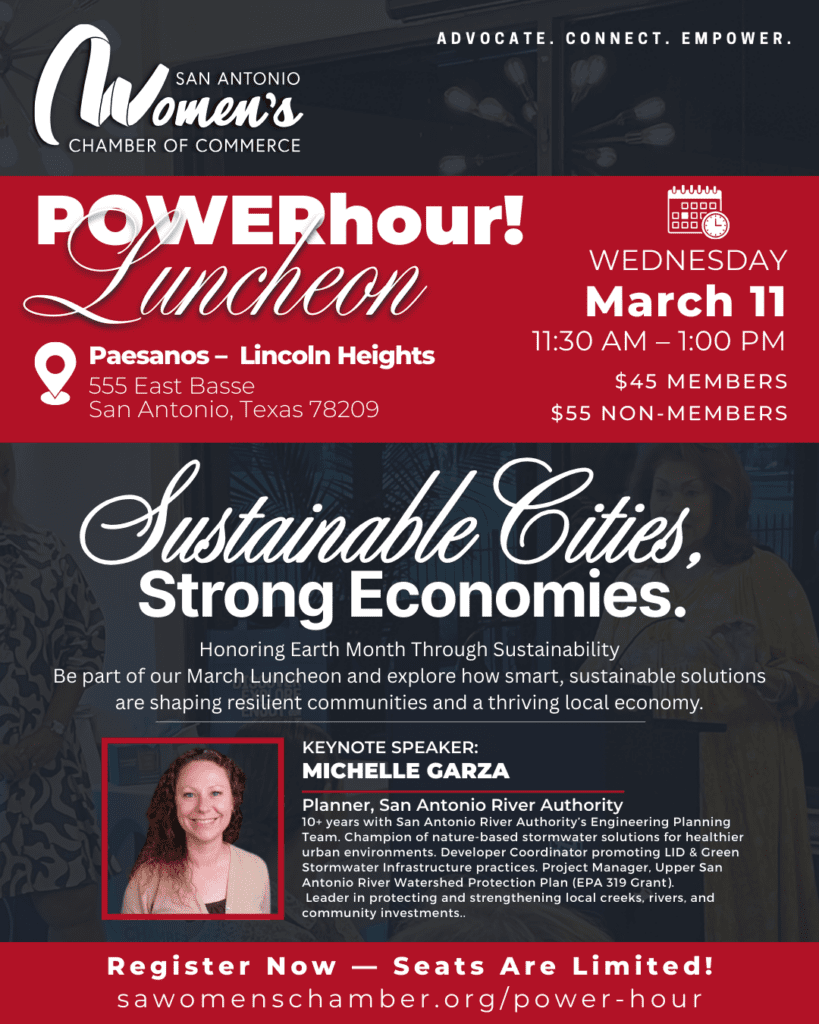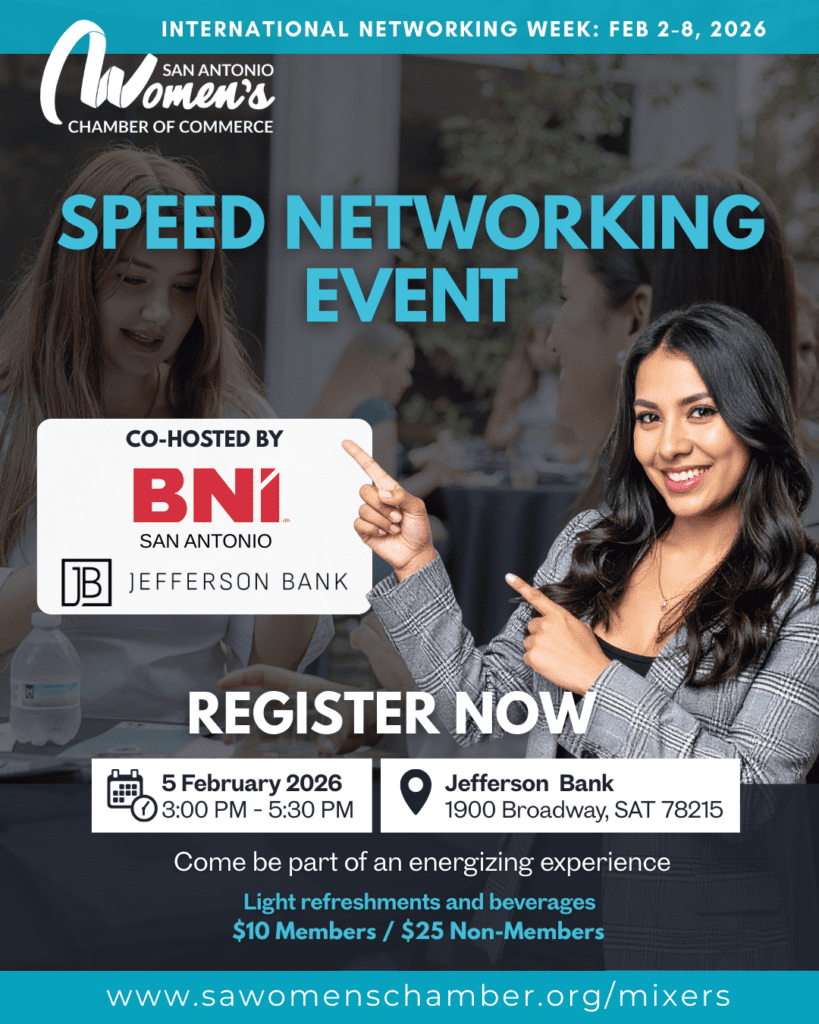 The San Antonio Women’s Chamber of Commerce is a dynamic network of professionals dedicated to ADVOCATING, CONNECTING, and EMPOWERING women to thrive in business and our community.