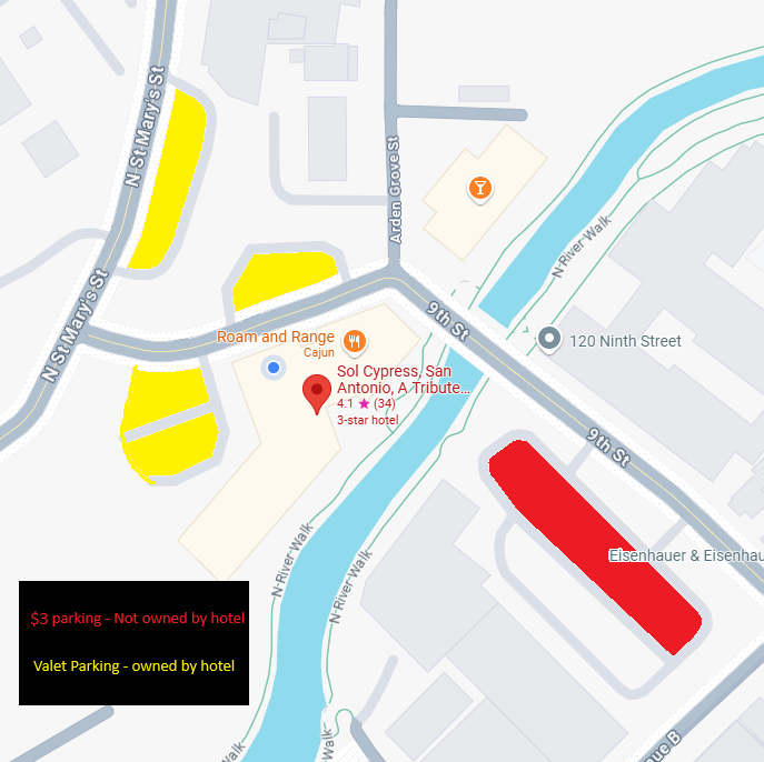 Click here for a Parking Map to help guide you to the correct parking area and entry points for the Sol Cypress Hotel.